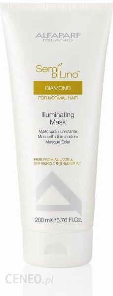 Mikrokrystaliczna maska to koncentrat z Masła Karite wzbogacony o Kryształki Diamentu. Głęboko odżywia włosy, pozostawiając je naturalnie miękkimi i lśniącymi. Koniec ze splątanymi włosami. Bogata w aktywne składniki maseczka regeneruje zniszczone części włosa, odżywiając i nadając włosom elastyczność. *Sposób użycia*: Po umyciu szamponem nanieść na wilgotne włosy. Wmasować na całej długości, również końcówki. Pozostawić na włosach przez 5 minut. Rozczesać i spłukać obficie letnią wodą. Przystąpić do układania fryzury. Alfaparf Semi di Lino Diamond to linia do włosów normalnych – to wyjątkowy i długotrwały blask, intensywność koloru chroniona przed upływem czasu, włosy odżywione i lśniące jak diamenty. Jest to linia do włosów normalnych, które nie wymagają zabiegów związanych ze specyficznymi wymogami. To doskonale zharmonizowana formuła, delikatna ale i wyjątkowo skuteczna. Prawdziwy koncentrat odżywiający włosy oraz dostarczający im elementów, które sprawiają, że stają się coraz to piękniejsze, dzień po dniu. zespół witamin A, E, i F działa bezpośrednio na skórę, odżywiając ją. W połączeniu s Shine Fix Complex, całkowicie domyka pory skórne sprawiając, że włosy powracają do stanu doskonałości., błyszcząc jak nigdy dotąd. Color Fix Complex długotrwale chroni i podkreśla blask oraz intensywność koloru. Shine Fix Complex bogaty w kwasy Omega 3 i Omega 6 ujednolica powierzchnię włókna włosowego dzięki czemu włosy odzyskują piękny, naturalny blask. Color Fix Complex zapewnia intensywność i blask koloru. Gwarantuje wielopoziomowa ochronę włosów. Otaczający je filtr chroni przed działaniem agresywnych czynników zewnętrznych, a substancje zapobiegające utlenianiu pozwalają na unikniecie procesu niszczenia włókna włosowego. Wszystkie produkty Alfaparf pozbawione są wszelkich substancji, które określamy jako nieprzyjazne. Produkty są bez siarczanów, bez parabenów, bez parafiny, bez mineralnych alergenów.