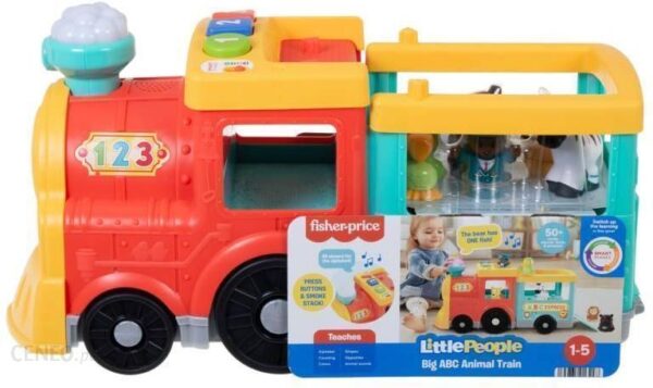 Fisher-Price Little People Edukacyjny pociąg ze zwierzątkami HHH93Dzieci mogą wyruszyć na wesołą kolejową przygodę z Edukacyjnym pociągiem ze zwierzątkami Little People® od Fisher-Price®. Ten duży zabawkowy pociąg do popychania ze światełkami, dźwiękami, muzyką i wypowiedziami ma 5 figurek zwierzątek Little People®, które można zabierać na wycieczki. Gdy mali konduktorzy wożą swoich egzotycznych pasażerów wokół salonu, treści edukacyjne wprowadzają ich w świat literek, liczenia, kolorów i nie tylko.