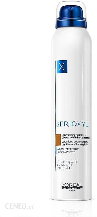 Kolor: jasny brązLoreal Serioxyl Volumizing Coloured Spray to spray koloryzujący, który zwiększa objętość włosów cienkich i wypadających oraz maskuje przerzedzone włosy. Kosmetyk posiada w składzie barwiące pigmenty, które dopasowują się do odcienia włosów oraz optycznie zakrywają przerzedzone miejsca na skórze głowy. Spray barwi zarówno skalp, jaki włosy, zapewniając równomierne i naturalne zamaskowanie przerzedzonej czupryny.Spray koloryzujący Loreal Serioxyl Volumizing Coloured Spray unosi włosy u nasady, daje im objętość i optyczne pogrubienie, dzięki czemu fryzura prezentuje się bardziej atrakcyjnie. Hipoalergiczna formuła specyfiku doskonale sprawdzi się nawet przy wrażliwej i delikatnej skórze głowy.Rezultaty stosowania sprayu Loreal Serioxyl Volumizing Coloured Spray:• gęstsze, bardziej obfite włosy• zwiększona objętość pukli• zamaskowane przerzedzone miejsca na głowieDobierz kolor sprayu Loreal Serioxyl Volumizing Coloured Spray do swoich włosów:• do włosów czarnych i ciemnobrązowych – wybierz czarny• do włosów od ciemnobrązowych do średnio brązowych – wybierz brązowy• do włosów od średnio brązowych do jasnobrązowych – wybierz jasny brąz• do włosów blond – wybierz blond• do włosów siwych – wybierz siwyZobacz, jakie efekty daje Loreal Serioxyl Volumizing Coloured Spray: