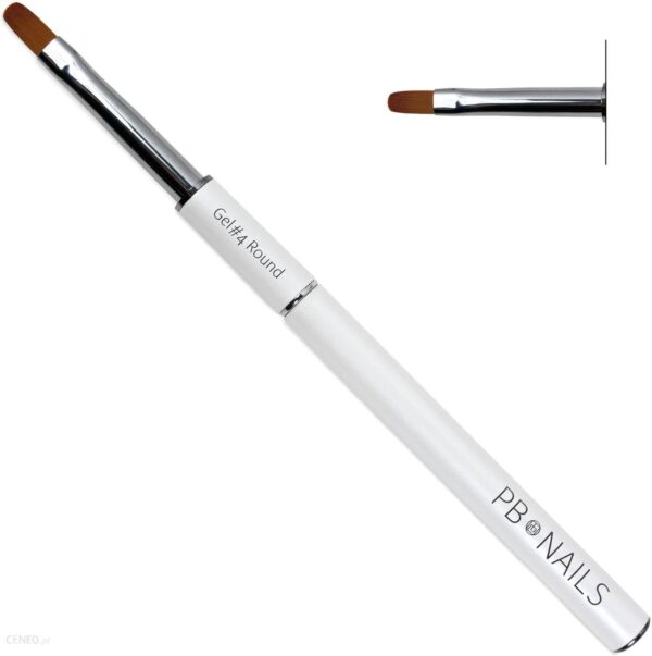 Do nakładania masy żelowej oraz przecierania linii uśmiechu Gel round 4 to pędzel do nakładania masy żelowej, z którą idealnie współpracuje i kontroluje jej aplikację. Posiada elastyczne, syntetyczne włosie ułożone na półokrągło, co sprawia, że żel oraz akrylożel można dokładnie rozłożyć przy wałach paznokci i rozprowadzić bez smug. Będzie idealnym wyborem dla osób preferujących pracę dłuższym włosiem. Pędzel ułatwi budowę dłuższych paznokci, ponieważ pozwala na zaaplikowanie większej ilość produktu, a także wymodelowanie żelu na długim paznokciu. Świetnie sprawdzi się również przy wypełnianiu końcówki we frenchu malowanym. Polecany do pracy żelem typu galaretka. Zamykana skuwka zabezpiecza włosie przed ewentualnym uszkodzeniem i rozszczepieniem. Rozmiar 11mm x 4mm